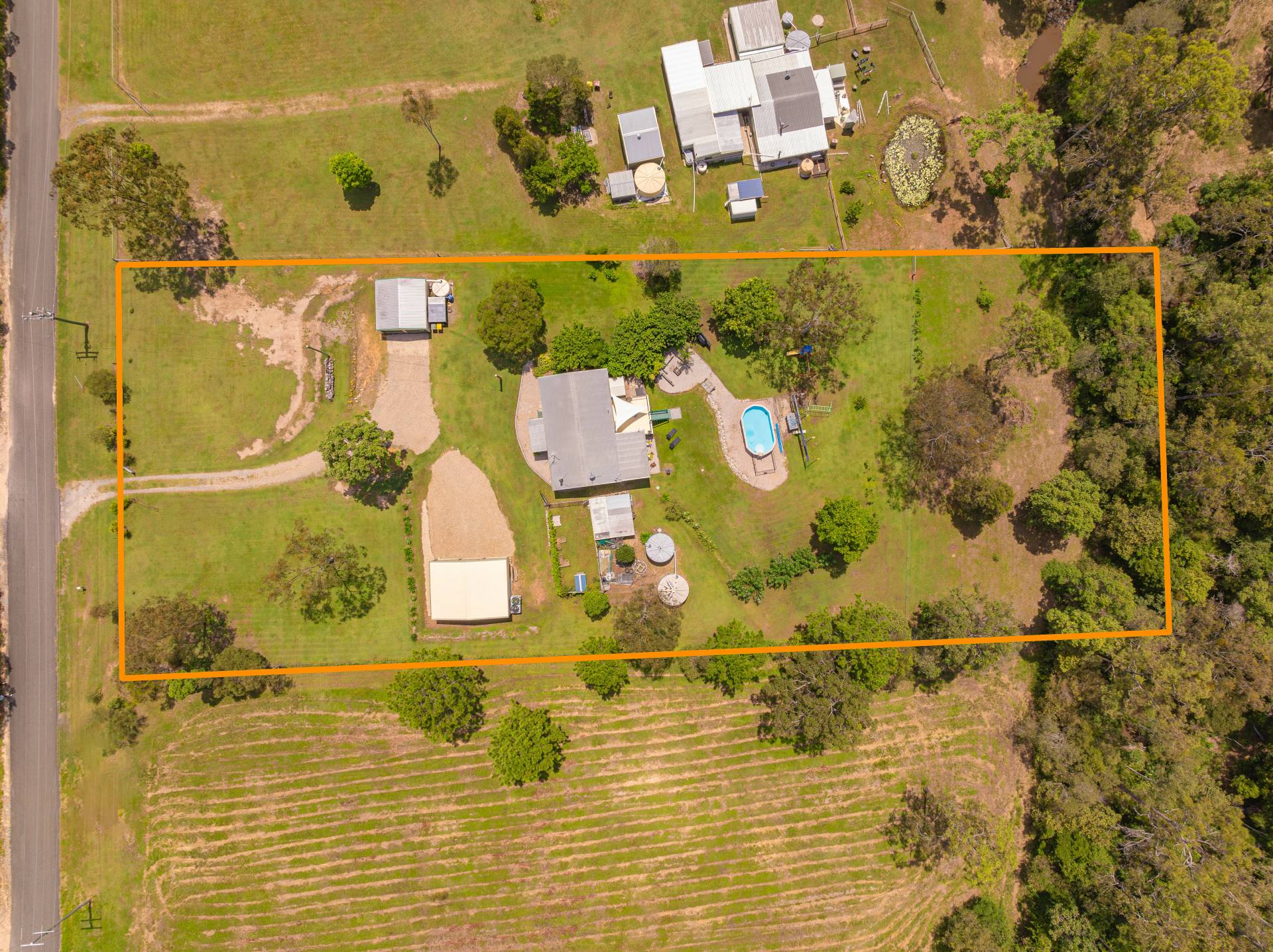 Seasonal creek running along the back of the property.
