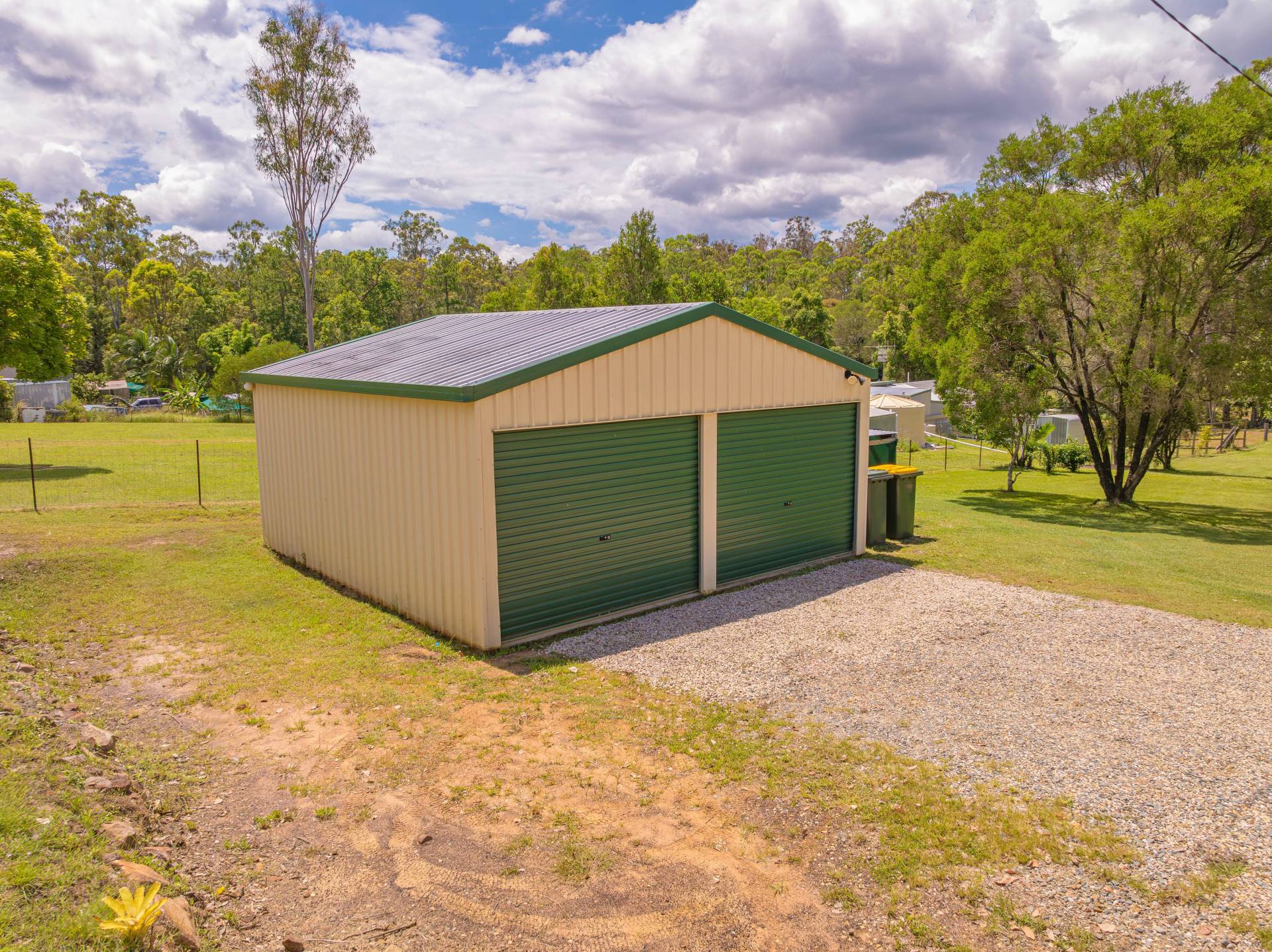 6m x 6m shed with power and two roller doors, one is electric and an additional 9m x 7m shed with 3 bays.