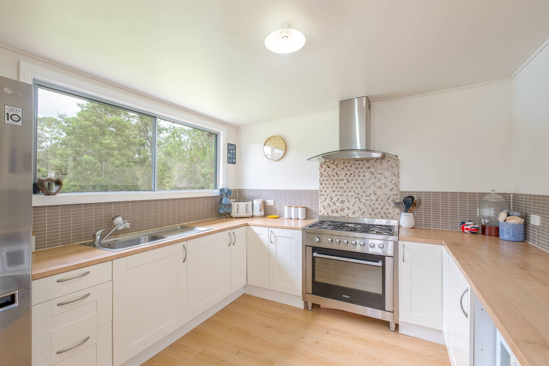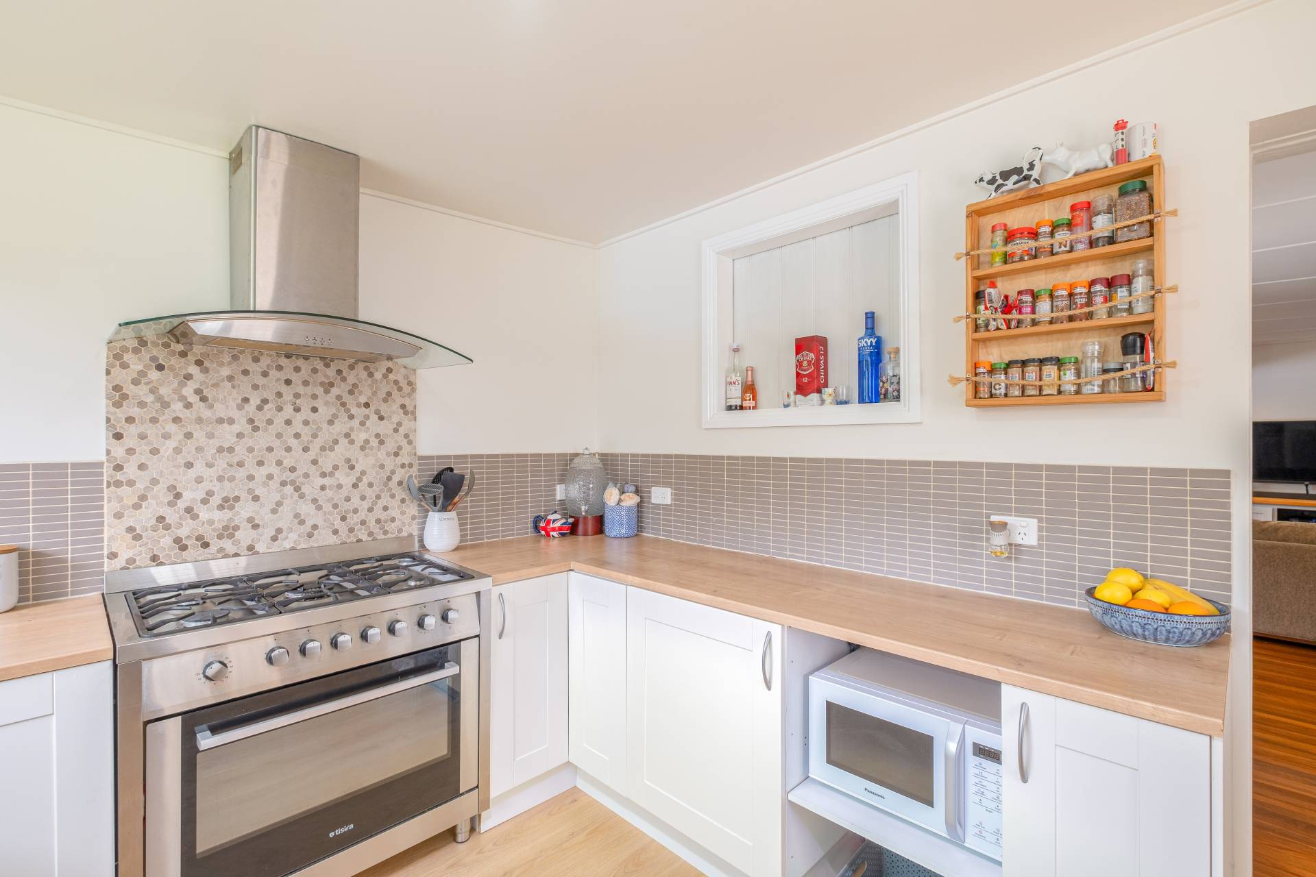 Modern renovated country style kitchen with stainless steel gas stove and heaps of pantry space