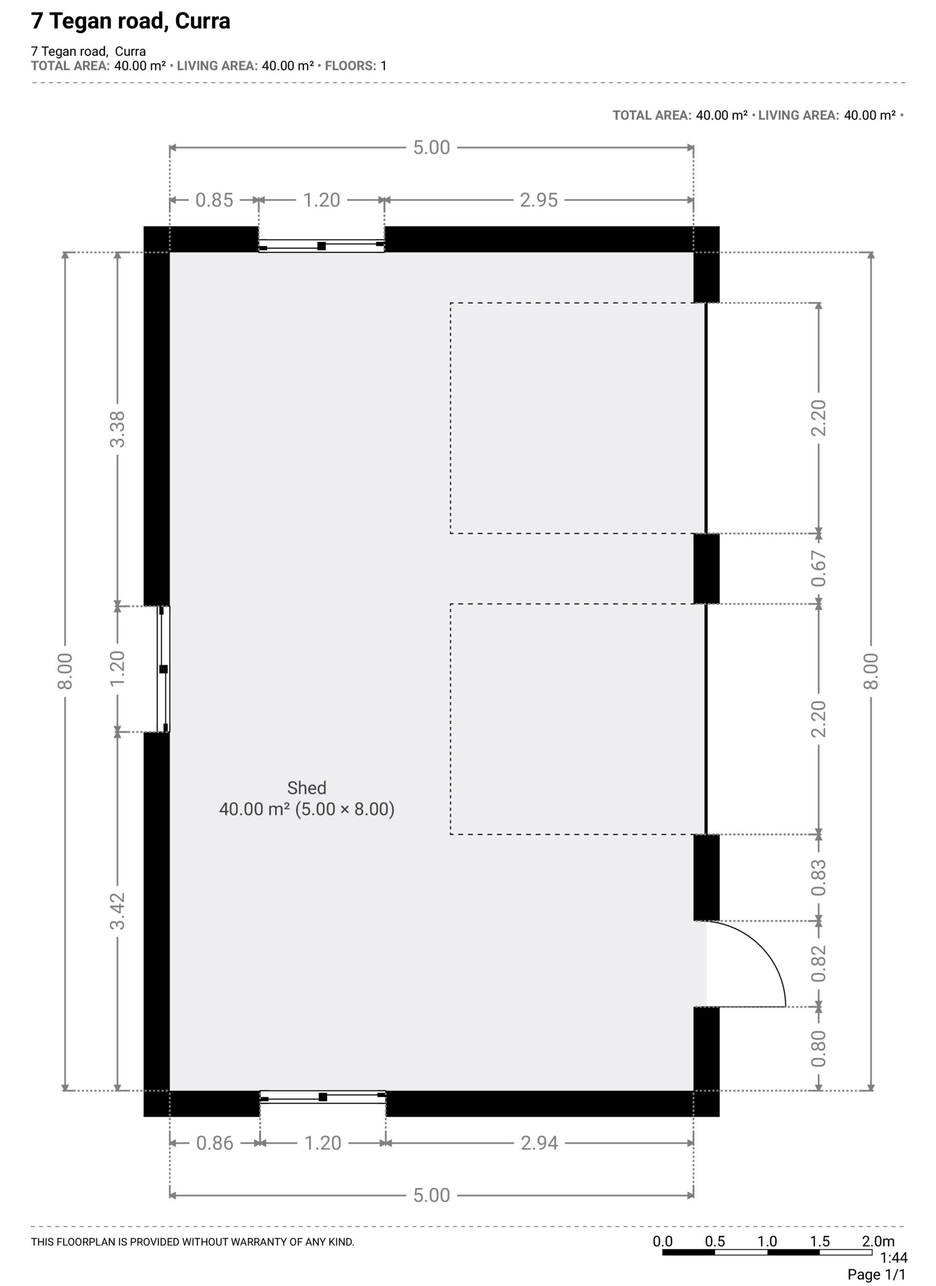The shed is 6m x 9m with 2 manual roller doors.  There is power to the shed with 2 ceiling fans and lighting throughout.