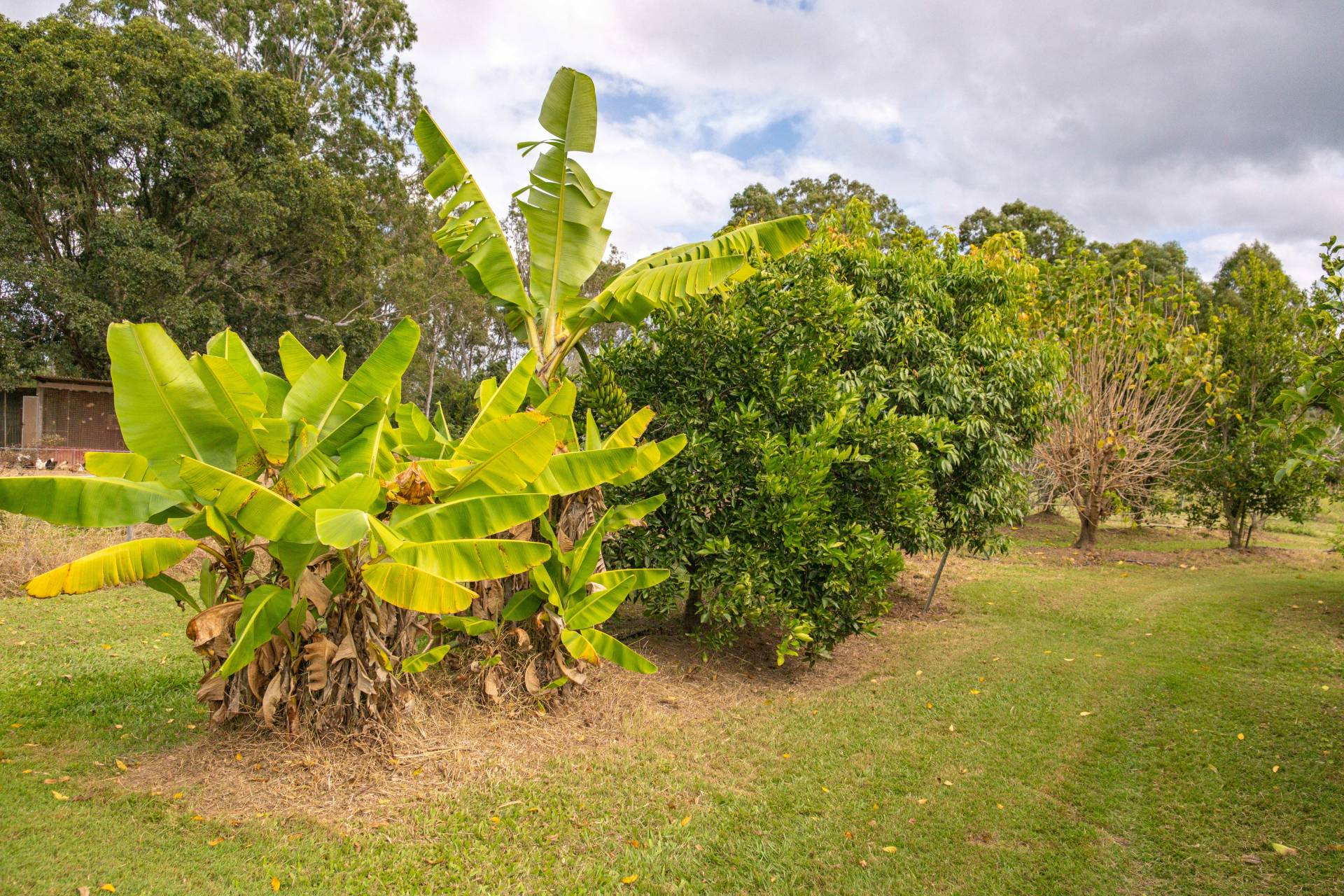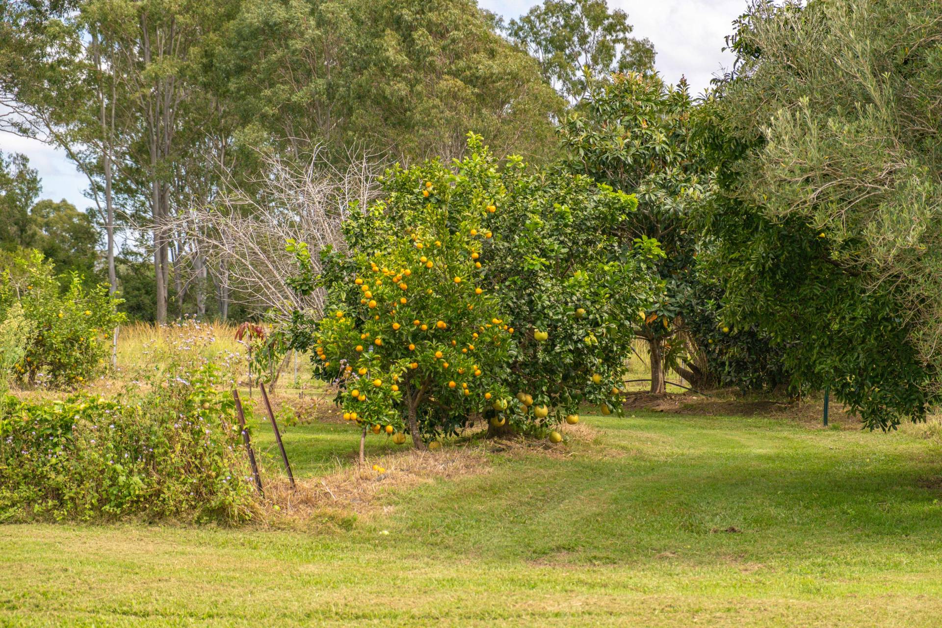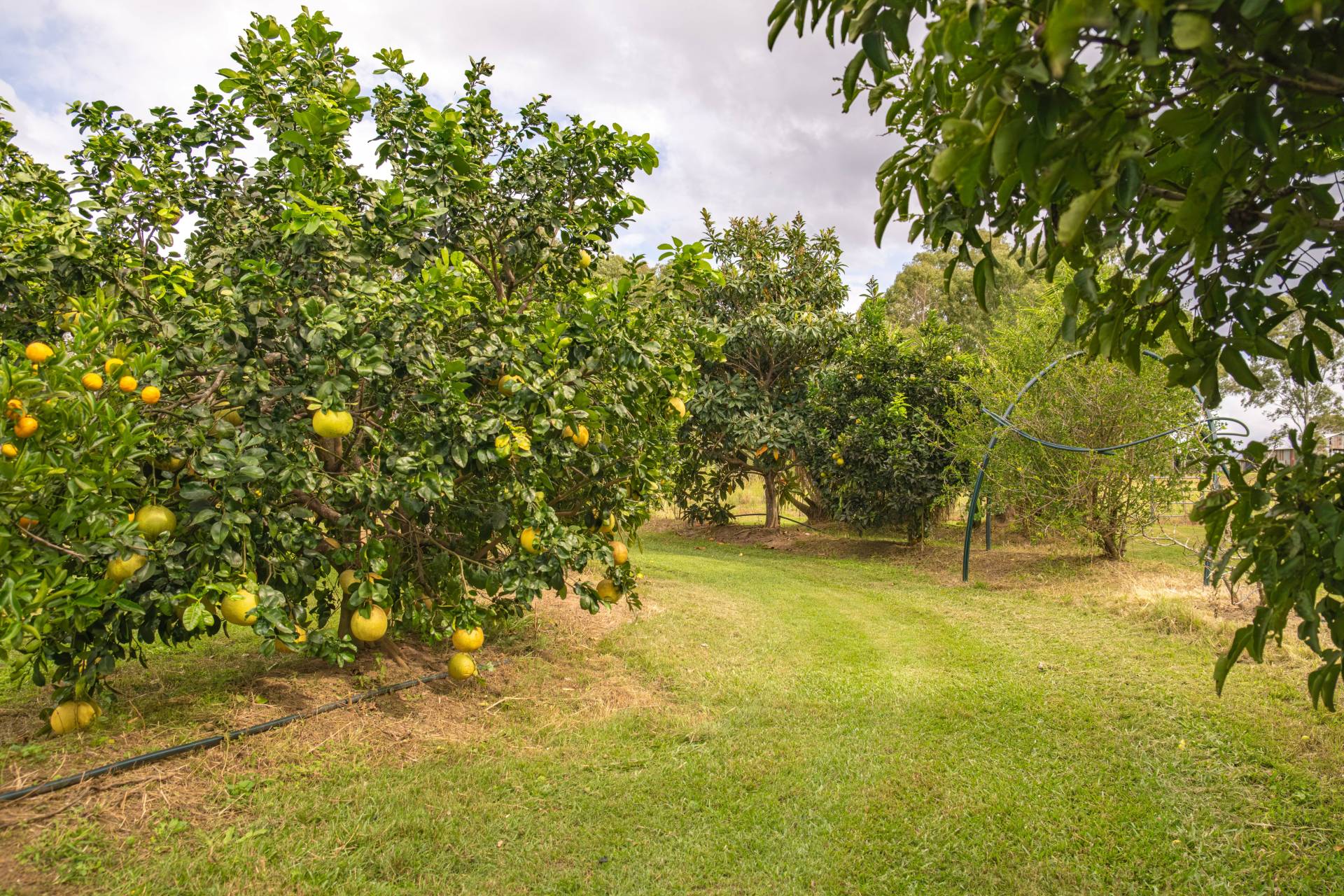 Bananas, nectarine, mandarin, orange, lime, lemon, guava, pecan, paw paw, custard apple, figs apple, nashi pear, mulberry, lychees, mango, dragon fruit, passionfruit, cherry all of which are connected to the water system.