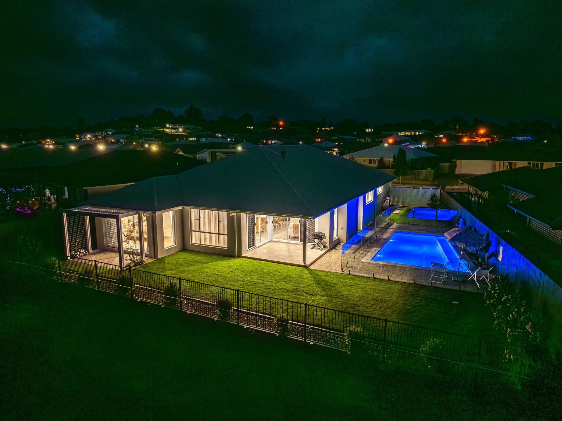 Built by Plantation Homes just over 1 year ago, this home boasts an incredibly well thought out floor plan of 269m2 under roof with high ceilings and high end and deluxe finishes. A luxury master suite of majestic proportions, with 3 large additional bedrooms (another 2 offering walk in robes for that extra touch of luxury). The ensuite has double vanity and a large shower and bathtub with a separate toilet.  There is a theatre room or additional formal lounge area for that extra family space and a beautifully equipped open plan kitchen/dining and family room as well as a walk in pantry – this home has it all. There is an additional bathroom with shower and a tub as well as a separate powder room.