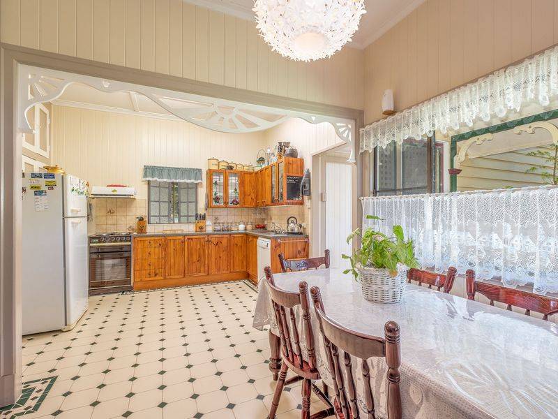Extra high ceilings, VJ walls, polished hardwood floors, casement windows and fretwork.