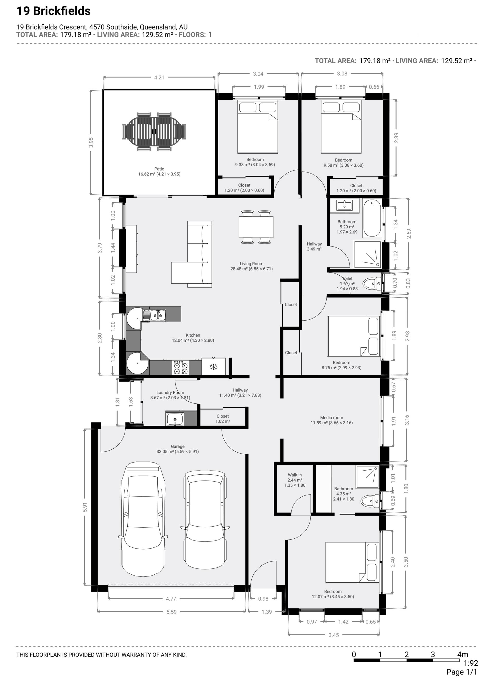 • Open-plan living and dining area with split system A/C and ceiling fans