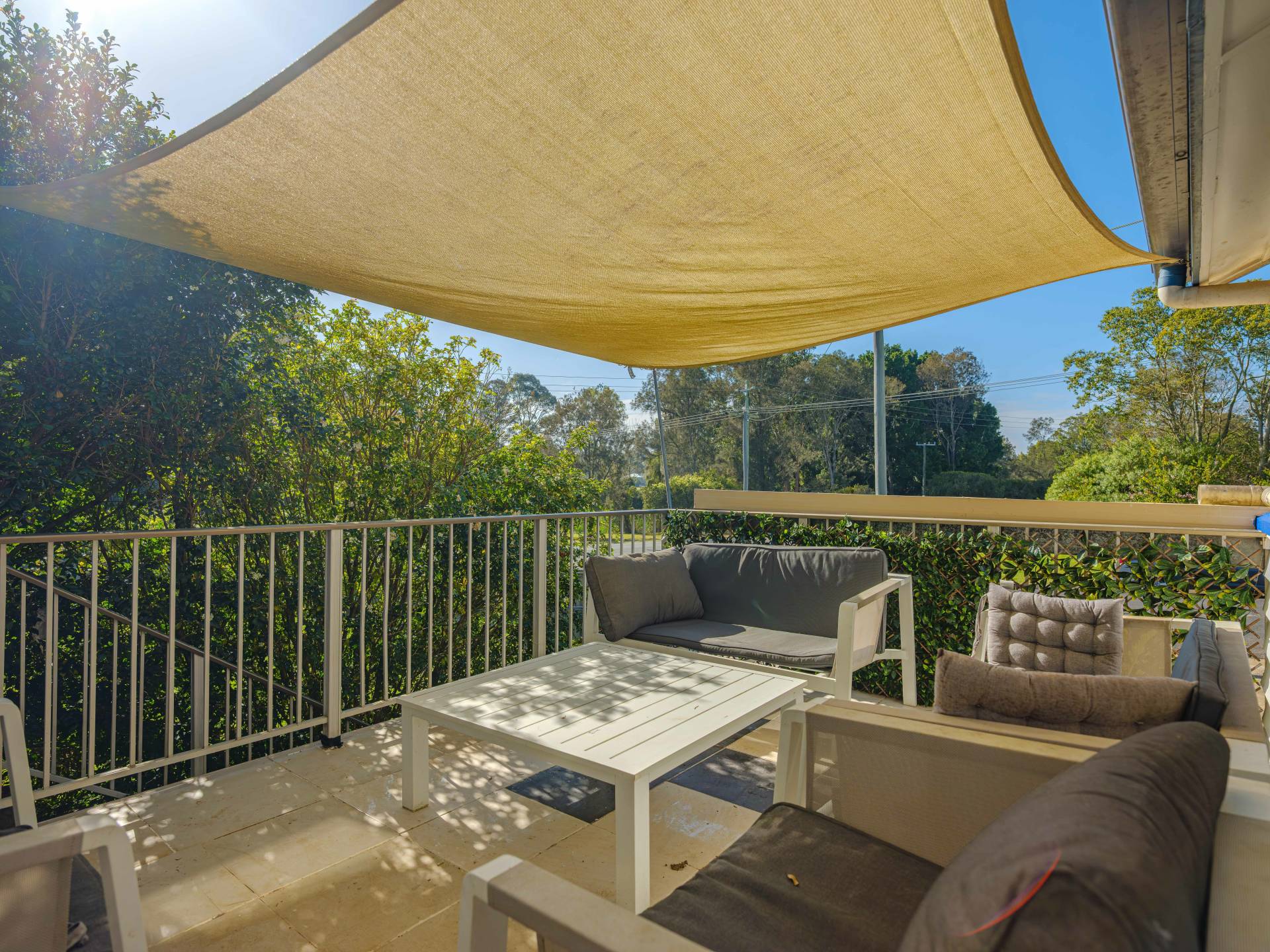 • A welcoming outdoor balcony provides an ideal spot for casual morning coffees or evening winding down under the skies.